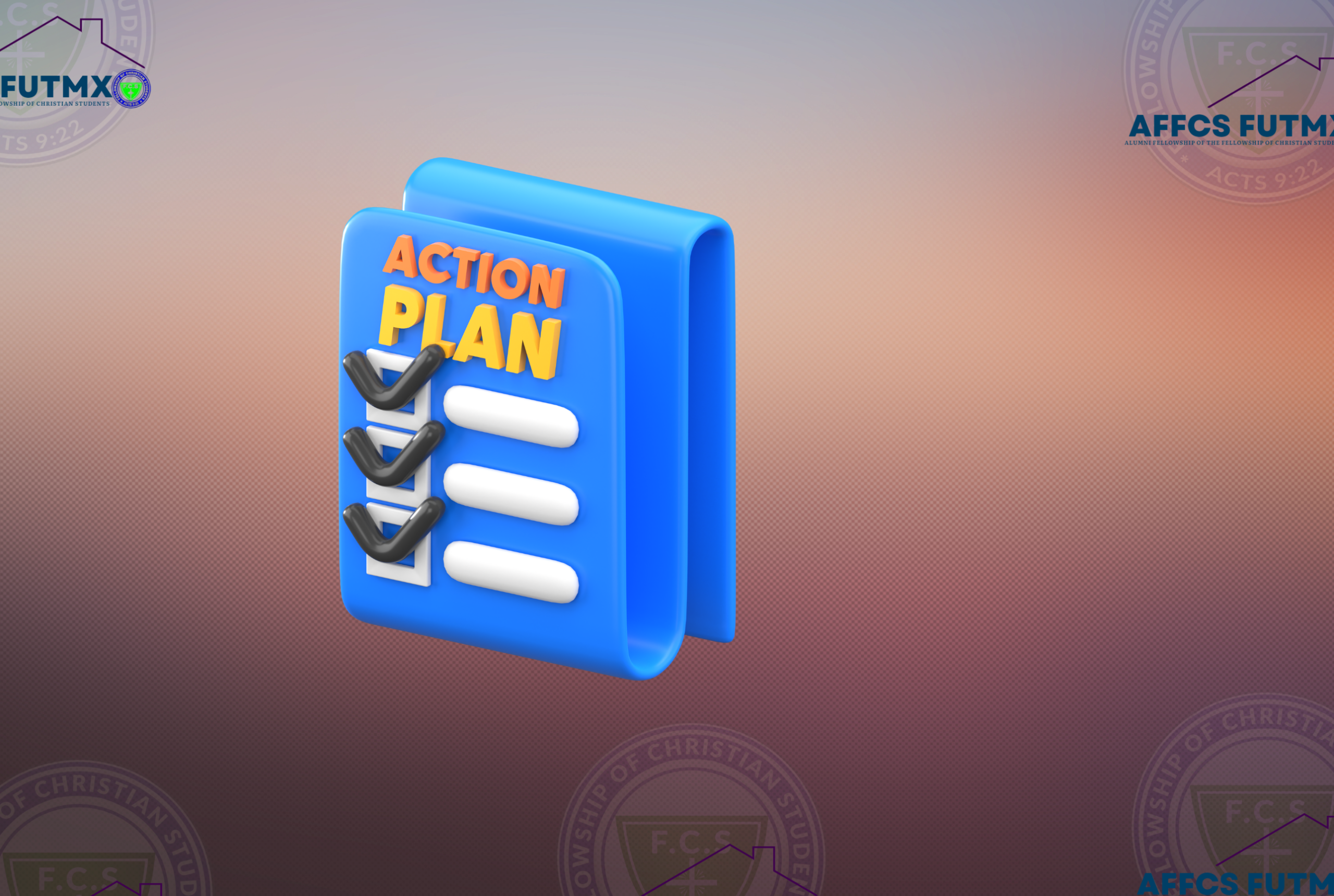 The primary aim of the AFFCS is to provide a forum where the alumni of the Fellowship of Christian Students, FUT Minna, can find support spiritually, morally, and professionally, and to be responsible for the student body, FCS FUT Minna.
